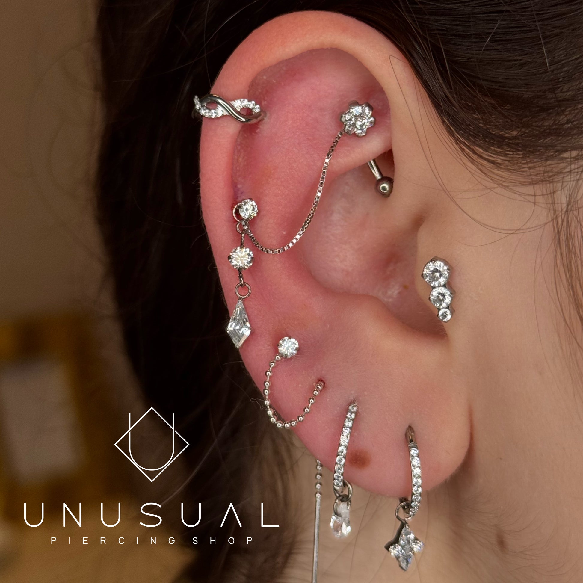 Per quanto riguarda le barre, la lunghezza varia dalla tipologia di piercing. Chiaramente ogni anatomia è differente, per cui è sempre bene rivolgersi anche al professionista che vi ha eseguito il piercing per capire con precisione la misura adatta al vostro orecchio, ma genericamente queste sono le dimensioni che consigliamo: