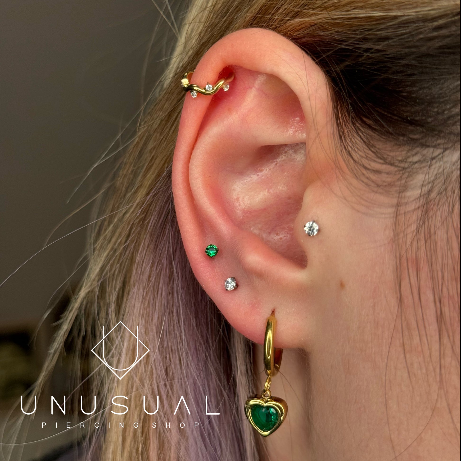 Se hai un helix piercing, ovvero un foro nella parte piatta dell'orecchio, questo è quello che fa al caso tuo poiché si adatterà riempiendo delicatamente la parte del padiglione. Questo gioiello permette di abbinarne altri senza che la composizioni risulti eccessiva