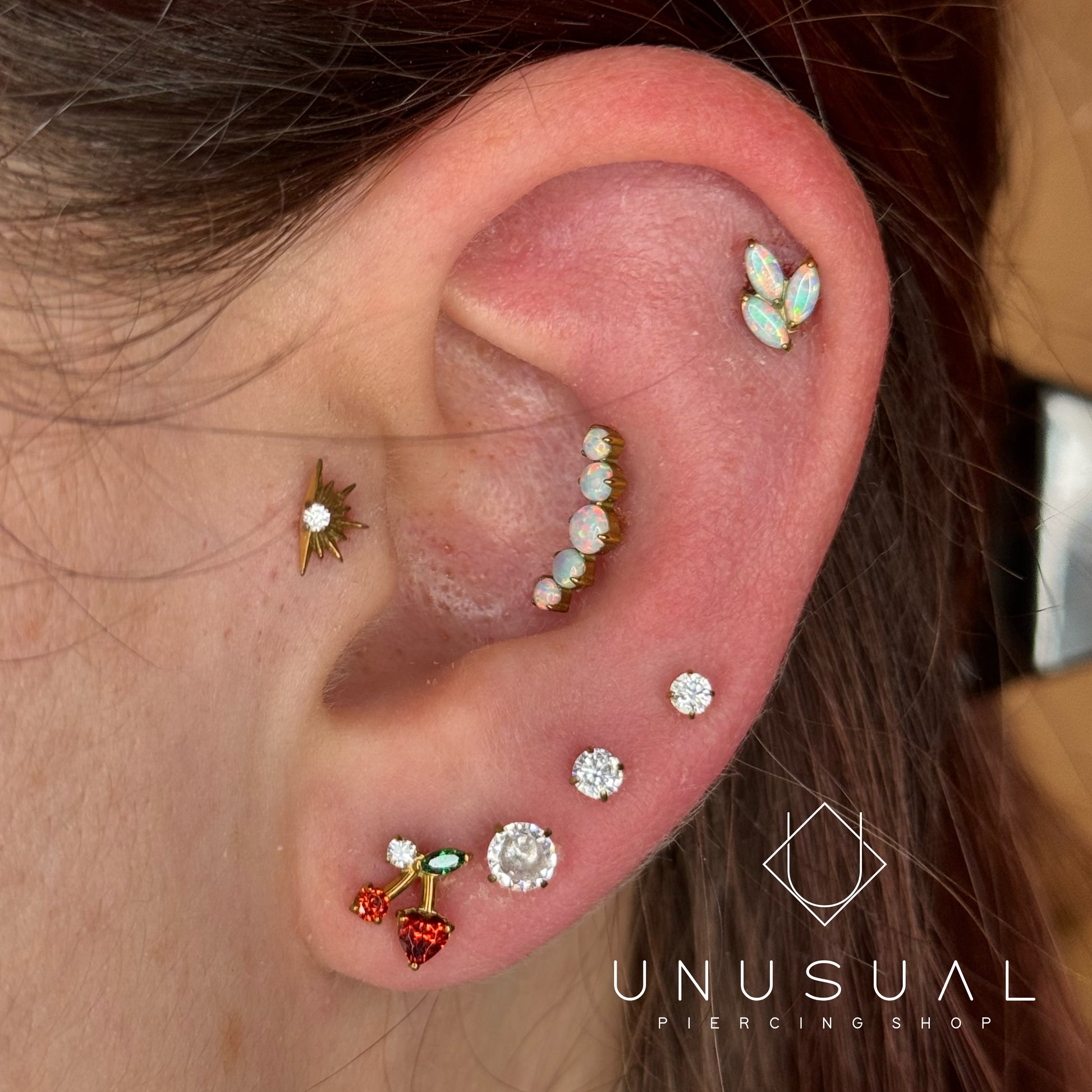 Il Triple Leaves Piercing in titanio è un gioiello super versatile proprio per le sue piccole dimensioni da inserire nel conch piercing, trago piercing, helix piercing, flat o lobo piercing. Il tuo terminale classico brillante bianco ti ha stancato e vorresti qualcosa di diverso dal solito? Unusual Piercing Shop ti offre quello che stai cercando. Questo terminale è composto da un unico brillante disponibile in più colori che, alla luce del sole, brillano tantissimo, risultando elegante e raffinato. Non passerà di certo inosservato!